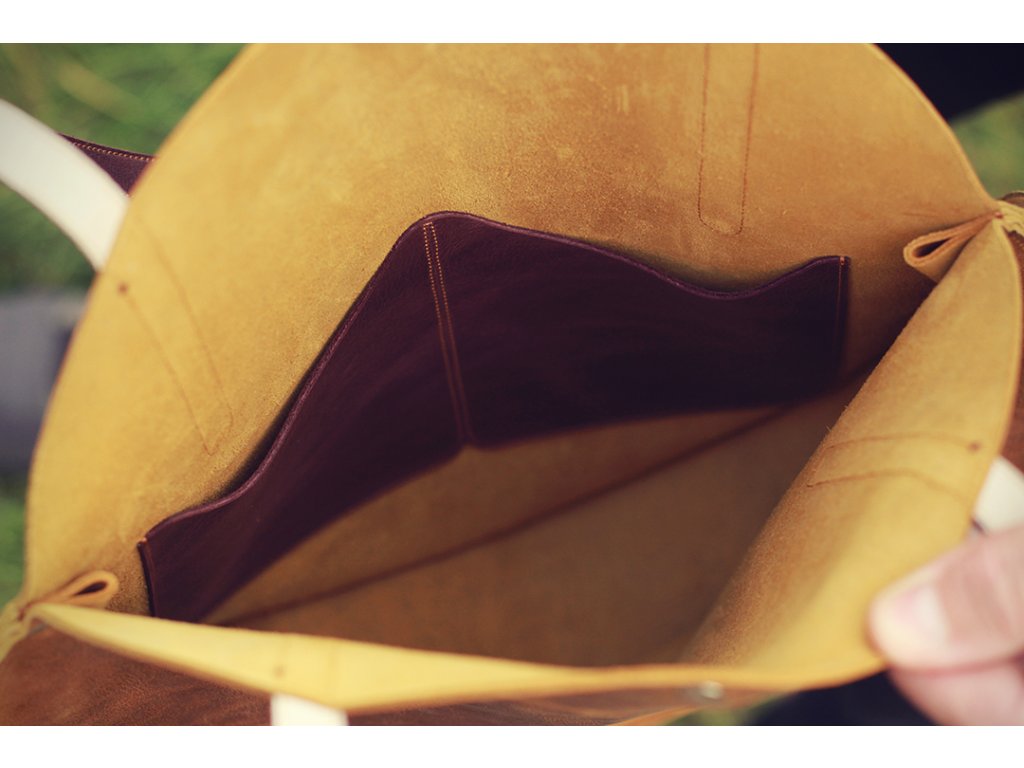 Lora je vyrobená z hovězí kůže pull up s retro efektem patiny - světlá při ohybu, tlaku, nebo natažení, po zavoskování znovu tmavne. Tato kůže je velmi odolná - případné poškrábání snadno zatřete krémem na kůži.