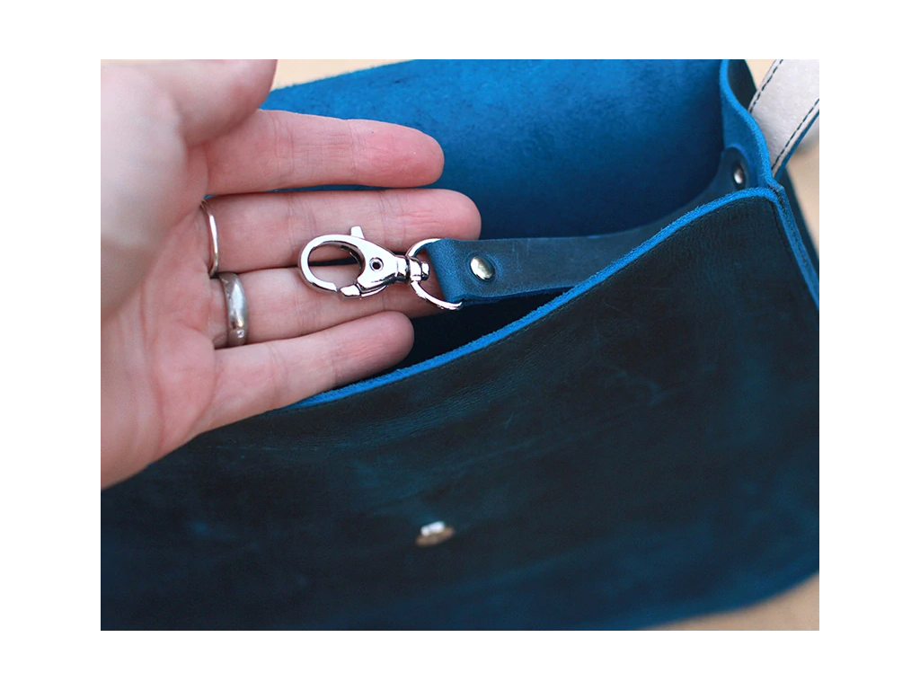 Zapínání je magnetické. Uvnitř kabelky najdete poutko s karabinkou, na kterou můžete připnout například klíče, nebo mincovku.