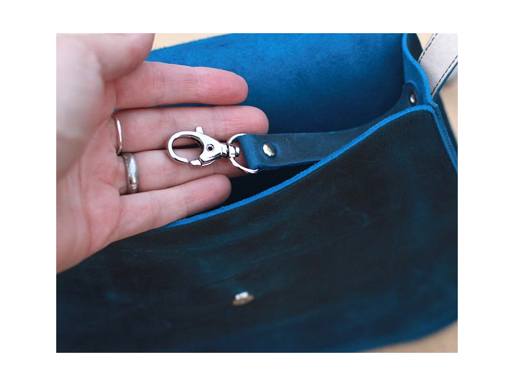 Zapínání je magnetické. Uvnitř kabelky najdete poutko s karabinkou, na kterou můžete připnout například klíče, nebo mincovku.