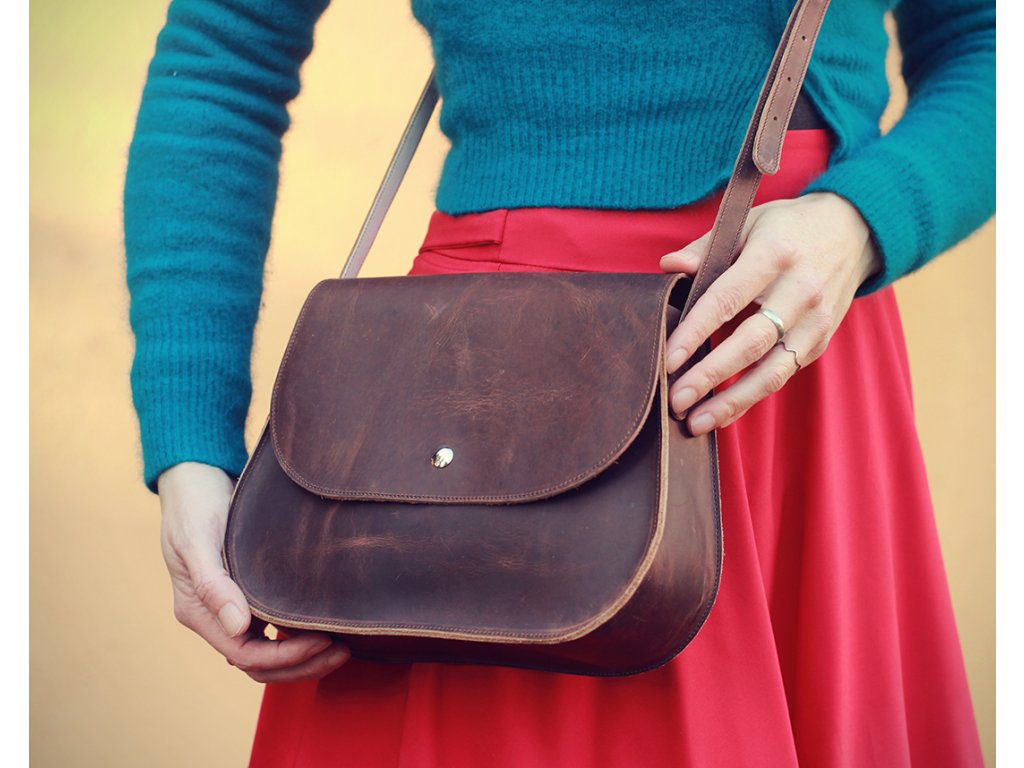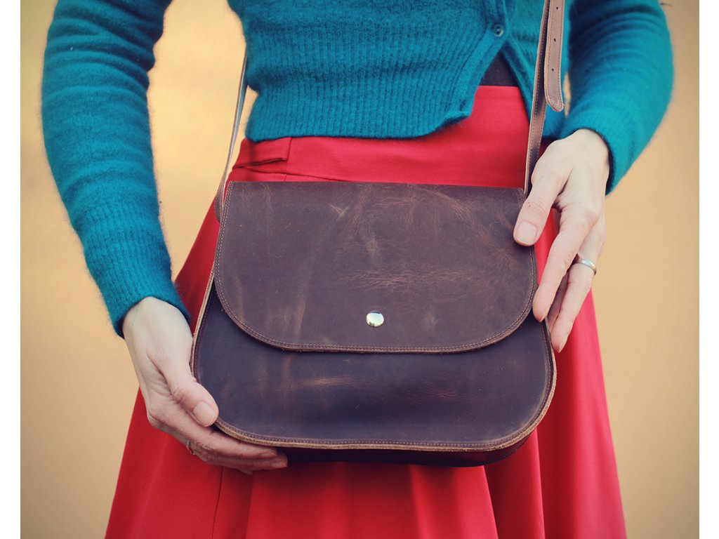 Kožená kabelka Meda vás bude provázet roky. Je vyrobená z hovězí kůže (pull up/greasy horse) s retro efektem patiny.
