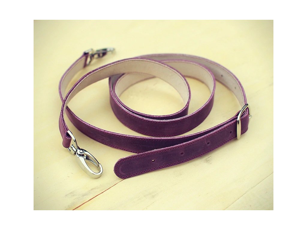 Dlouhý kožený popruh se sponou a dvěma karabinami, kterými popruh připevníte k batůžku.