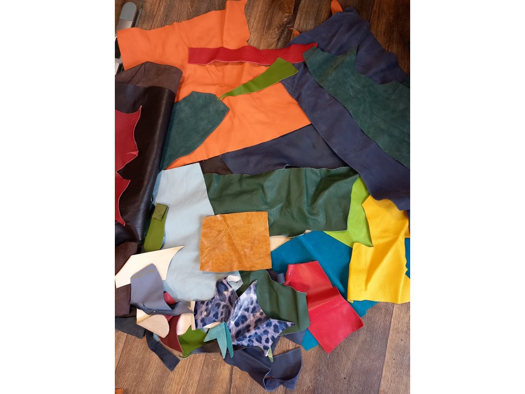 Mix kůží - větší jednobarevné kusy + malé pestrobarevné kousky.