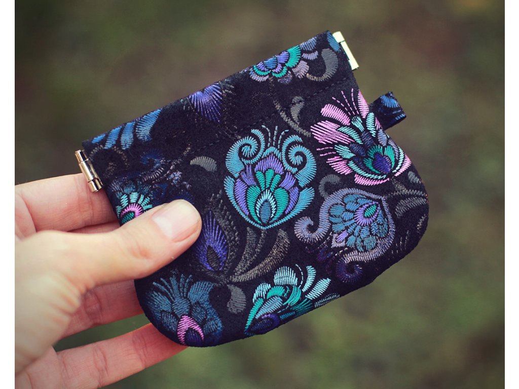 Velikost - pérko 10 cm, nejširší místo peněženky 10,7 cm, výška 8,5 cm.