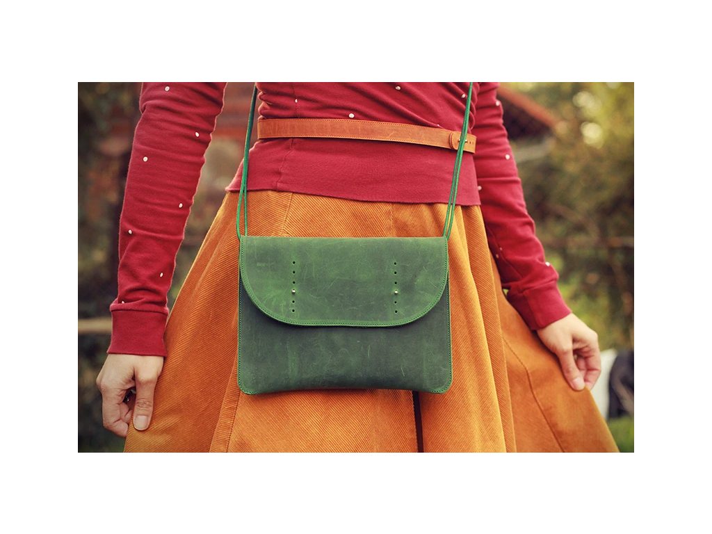 Kabelka Sia s koženou šňůrkou - zelená