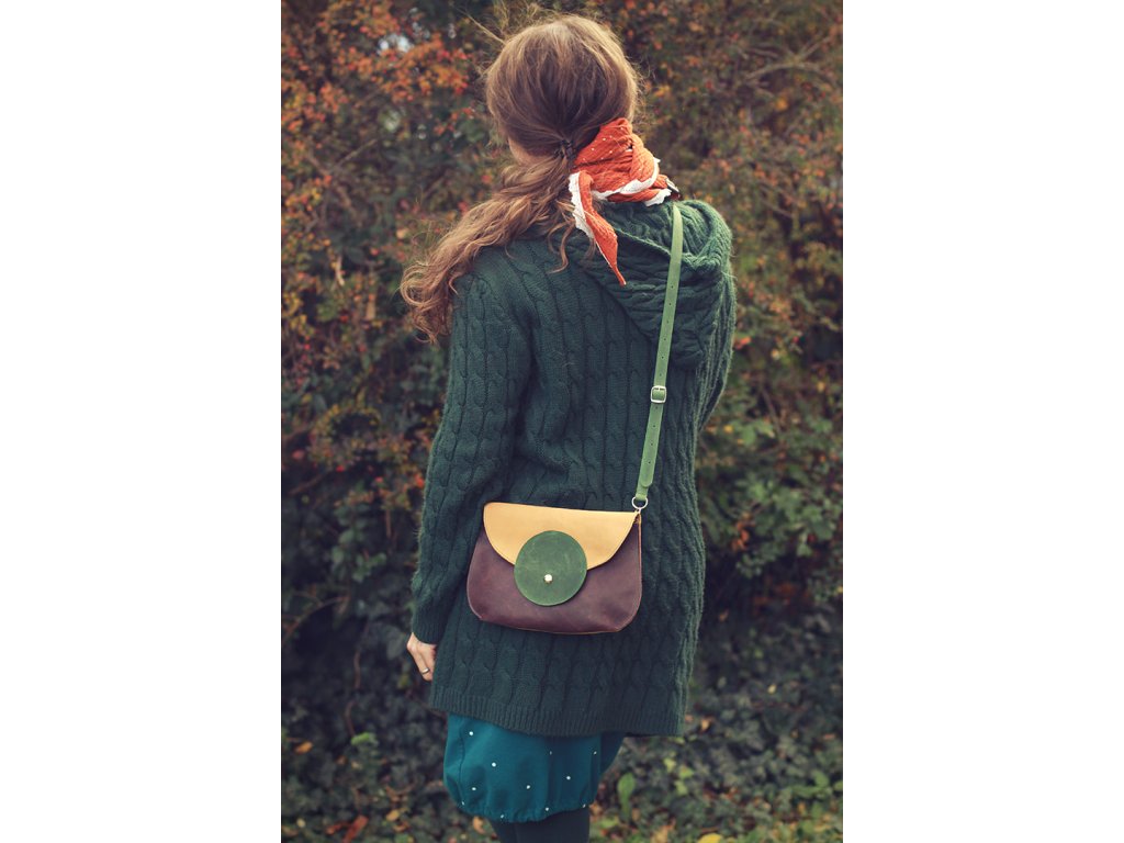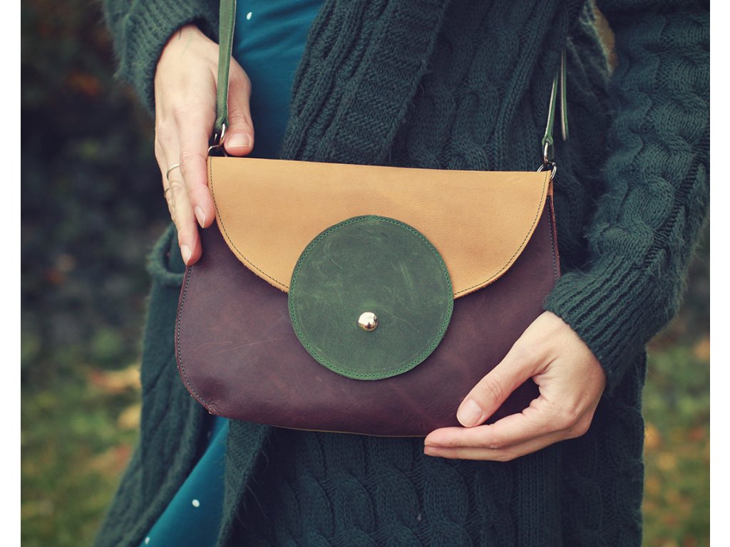Kabelka Tamar s popruhem - okrovo-zeleno-vínová